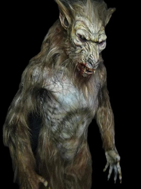 This Screen Worthy Costume includes a full over the head sfx mask, sfx hands, sfx feet and a custom painted and hand laid hair body suit.. All costumes are handmade to order, and will slightly vary.