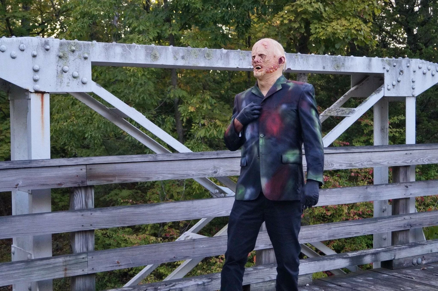 The Doll Face Halloween mask from The Horror Dome is actually two designs in one. There’s a grotesque over the head mask featuring open wounds, thin, wiry hair, burned flesh and puss-filled blisters, and an attachable porcelain-style doll mask, meant to spare the passerby the sight of his horrible disfigurement.