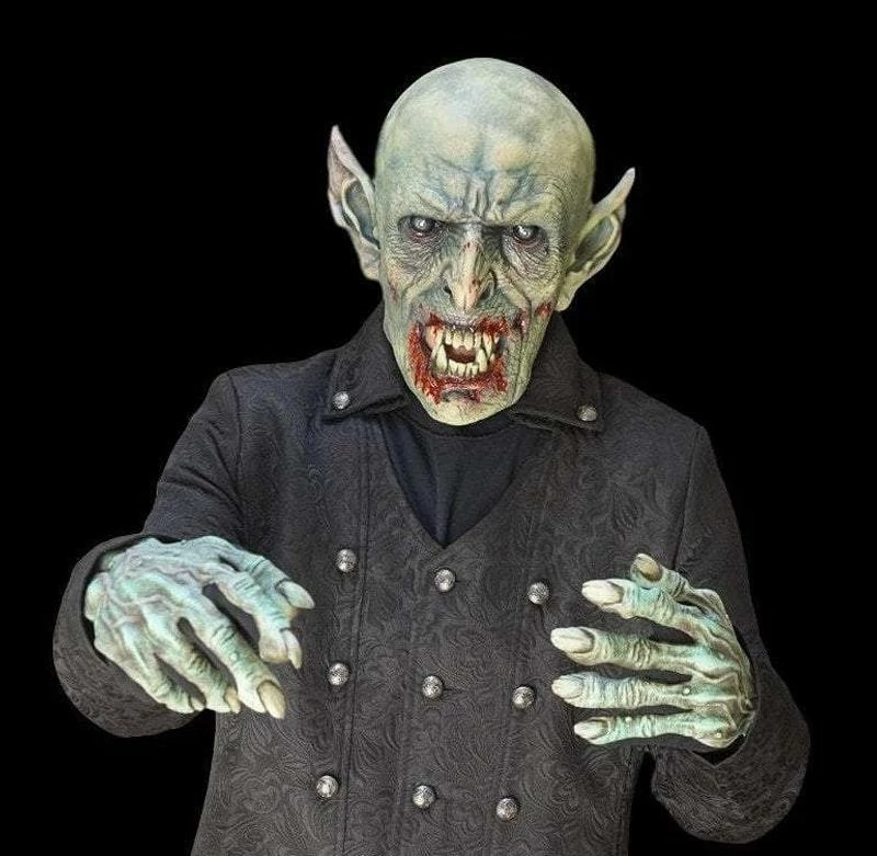 Our NEW Dusk till Dawn Halloween Costume will be the life of your next Halloween part. This ghastly vampire comes with everything you see, Dusk till Dawn Mask, High Quality Old Ghost Military Coat, and comfort fit gloves which allow you to pick things up– all lightweight and comfortable. The Mask was designed by Jordu Schell and is as realistic as they come.