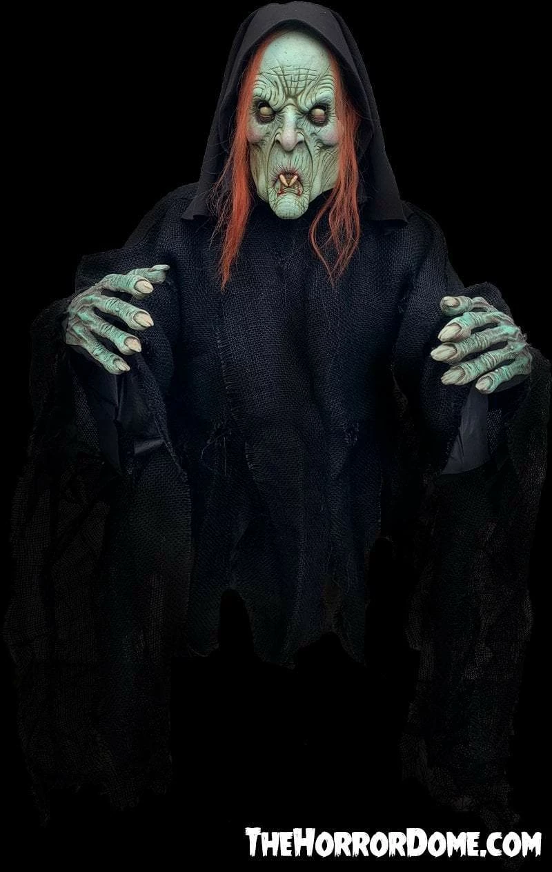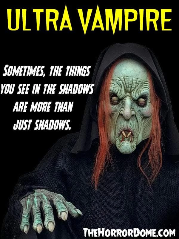 Our NEW Ultra Vampire Halloween Costume is a perfect fit for you Vampire lovers out there for this Halloween Season. This blood sucking Vampire comes with Everything you see, Comfort fit Ultra Vampire Mask with hood which is light weight and comfortable, Comfort fit gloves which allow you to pick things up and a Black Rotting burlap Shirt/Robe, shirt includes two hook and loop closures and a polyester lining. The cut Jute provides the rotting robe like appearance and reaches past the waist. One size fits most adults. Only from TheHorrorDome.com– Made in the USA